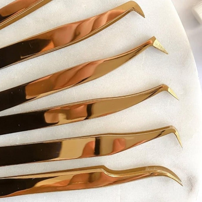 Designed for precision, these tweezers are used for applying and adjusting false eyelashes or for grooming eyebrows. Their fine, pointed tips allow for accurate grip and placement, making them essential tools for detailed eye makeup applications.