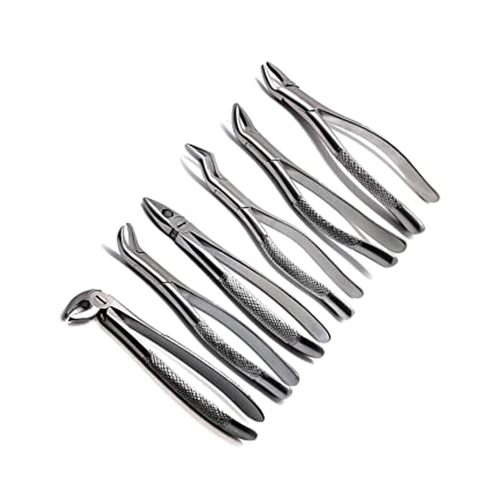 These pliers-like instruments are designed for gripping and extracting teeth. They come in various shapes and sizes to accommodate different types of teeth, providing leverage and control to facilitate a smooth and efficient extraction process.