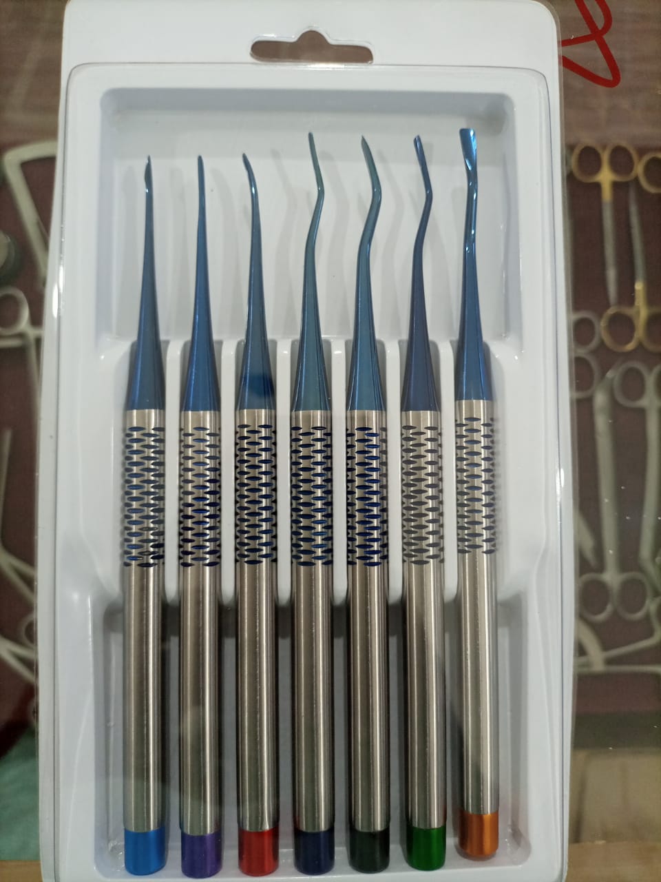 This set includes various chisels used in dental and oral surgery for shaping or cutting bone. Made from high-quality stainless steel, these tools allow for precise bone modification, often used in procedures such as extractions or implant preparations.