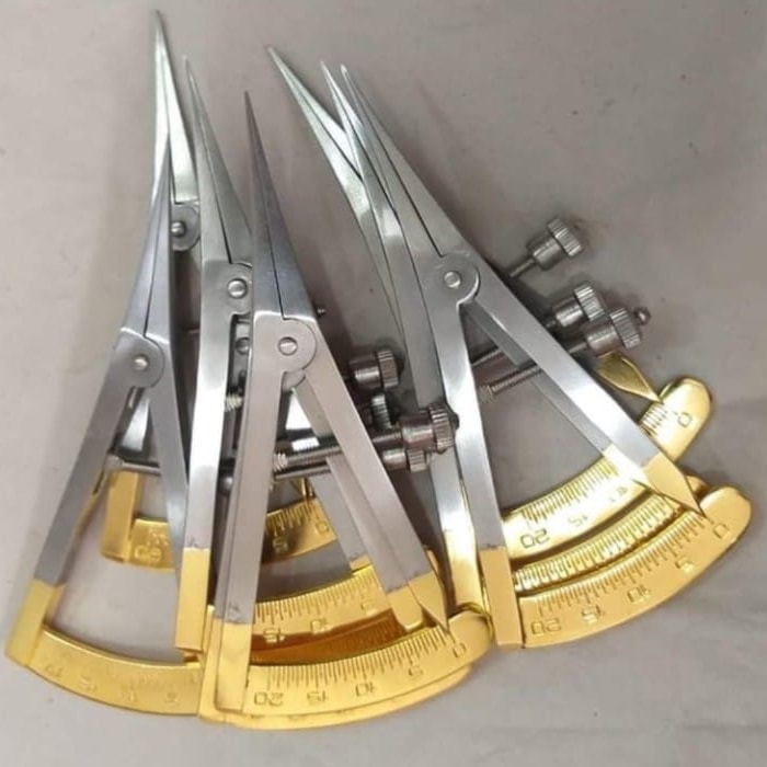 This stainless steel caliper is used for measuring and assessing the size and placement of dental implants. Its curved design allows for precise measurements in areas with limited visibility, aiding in accurate implant positioning and fitting.