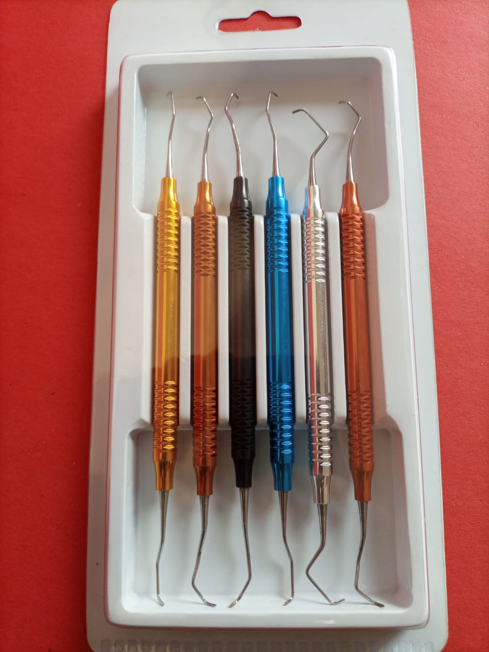 This tool is used to remove plaque and tartar buildup from the surface of teeth. With its sharp, curved blade, it effectively cleans between teeth and along the gum line, helping to prevent gum disease and maintain oral hygiene.